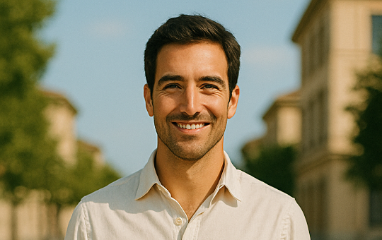 Spanish-speaking Male, 20–40 years old, clean and professional look.
